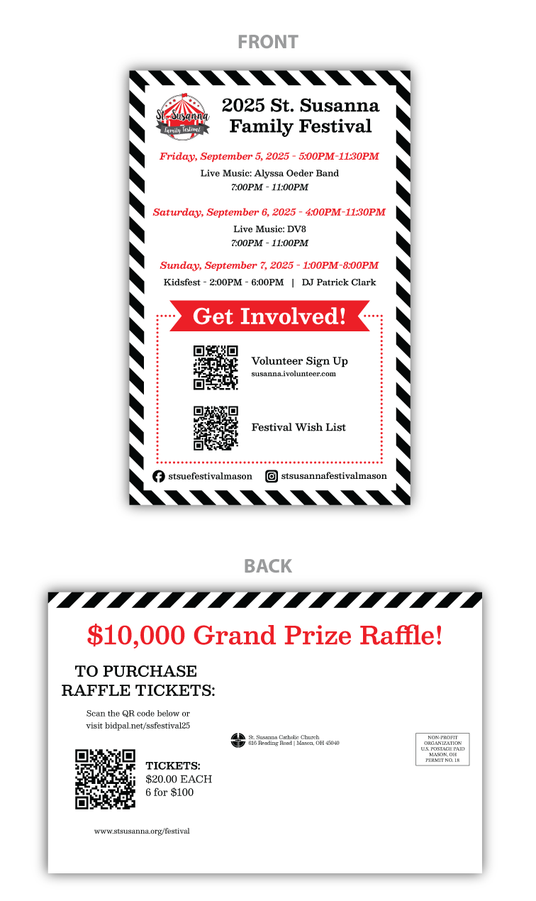 I designed promotional items for the St. Susanna Catholic Church Family Festival.